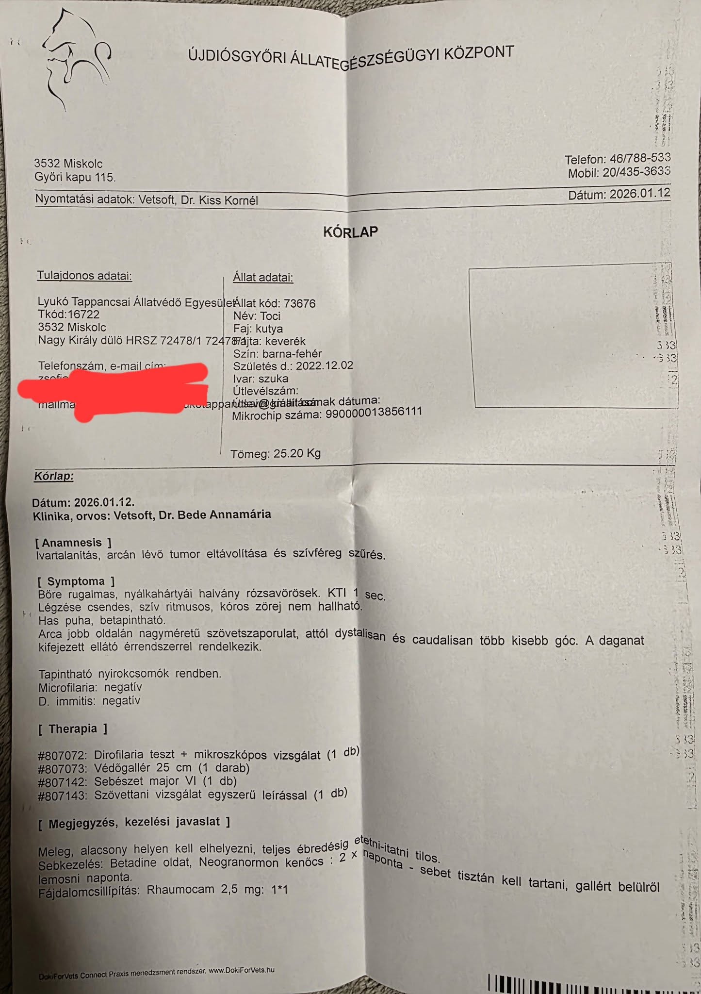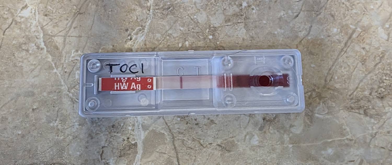 Szívféregre is szűrettük, szerencsére a teszt negatív lett