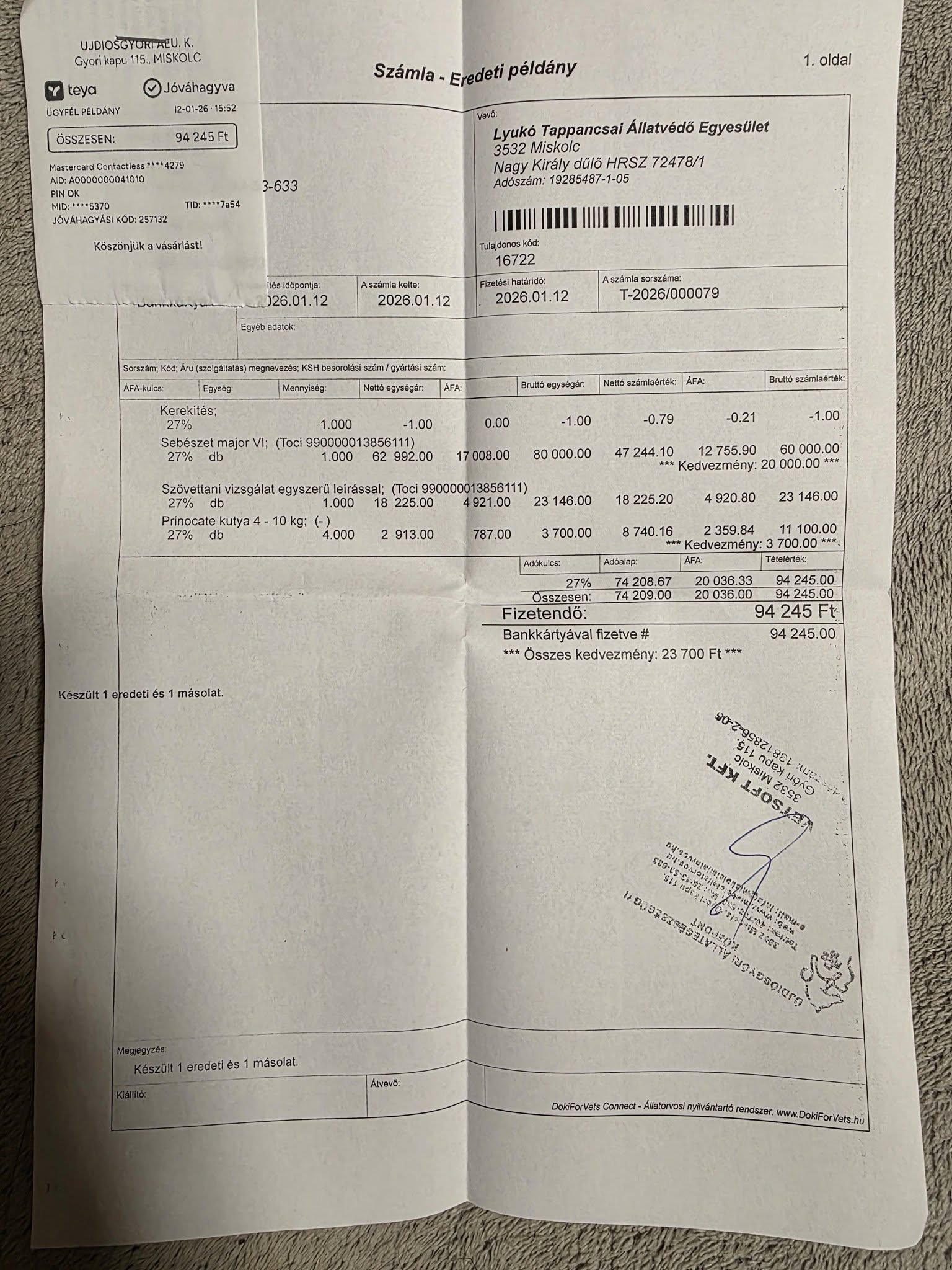 Toci műtétjét egy összegben ki tudtuk fizetni.