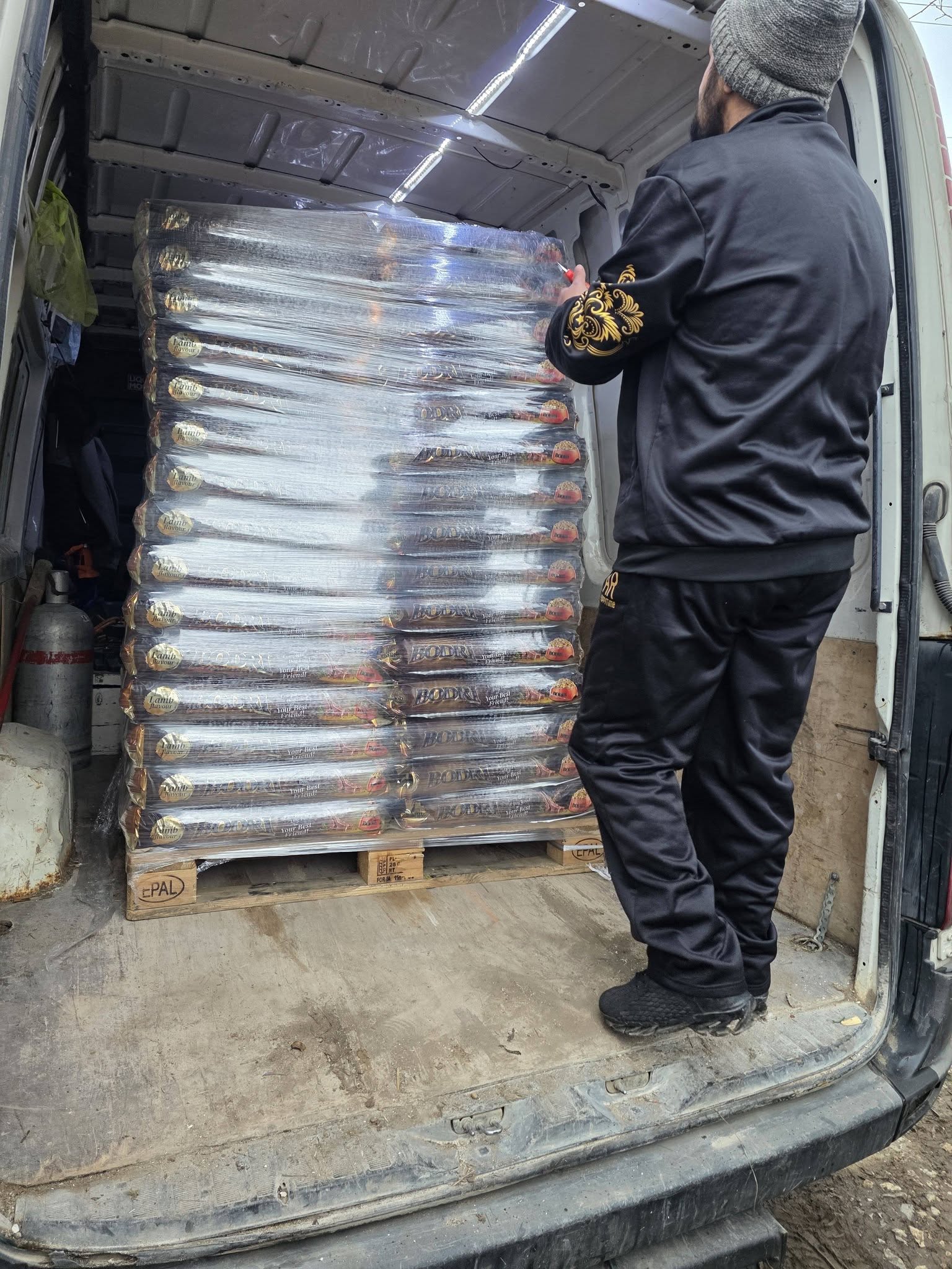 Be gördült az autó Miklós Beck -nek hála, aki ismét vállalta a fuvart, és elhozta nekünk a raktárból a három raklapnyi tápot. Szavakkal leírhatatlanul hálásak vagyunk 🙏❤️