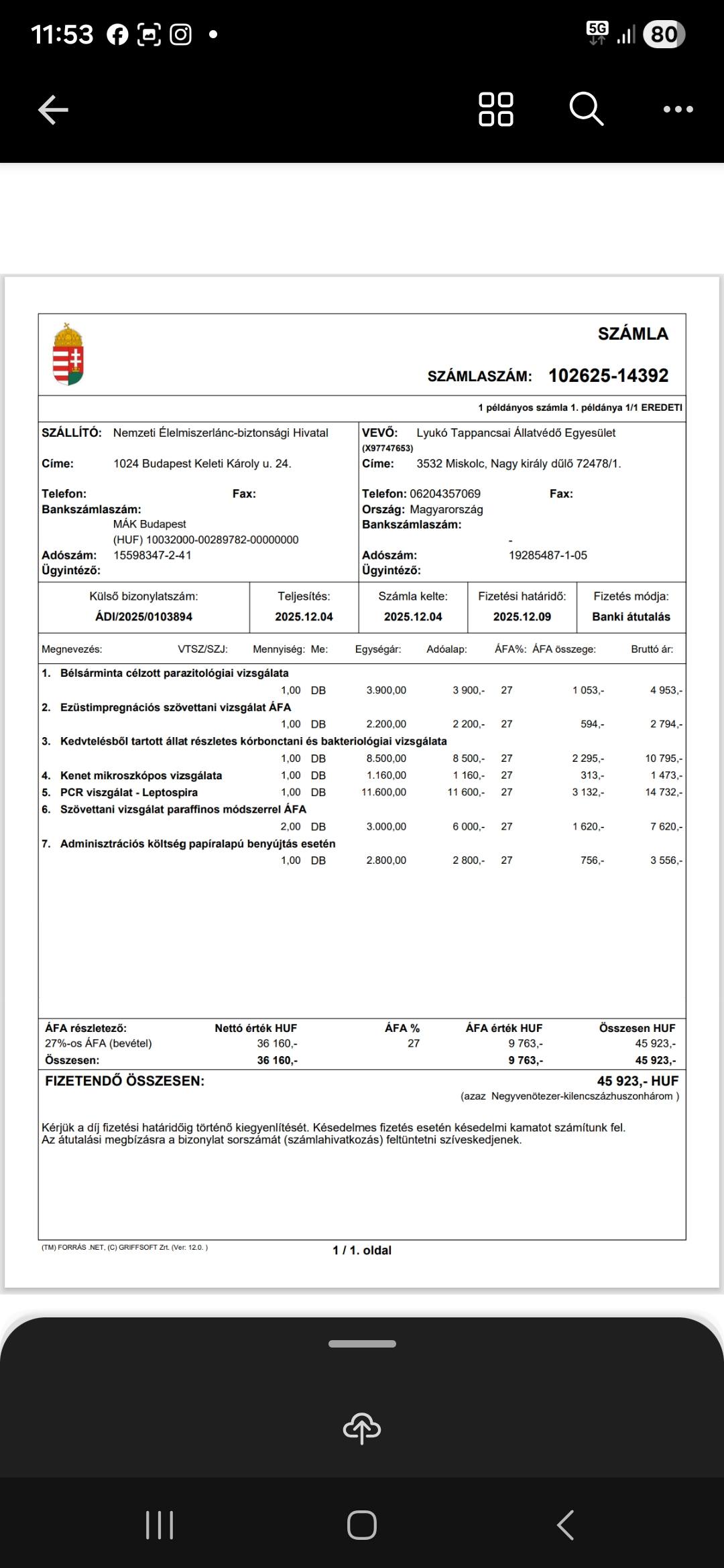 A boncolás költsége közel 46.000 Ft volt, ezt kifizettük, és most várjuk a további eredményeket.