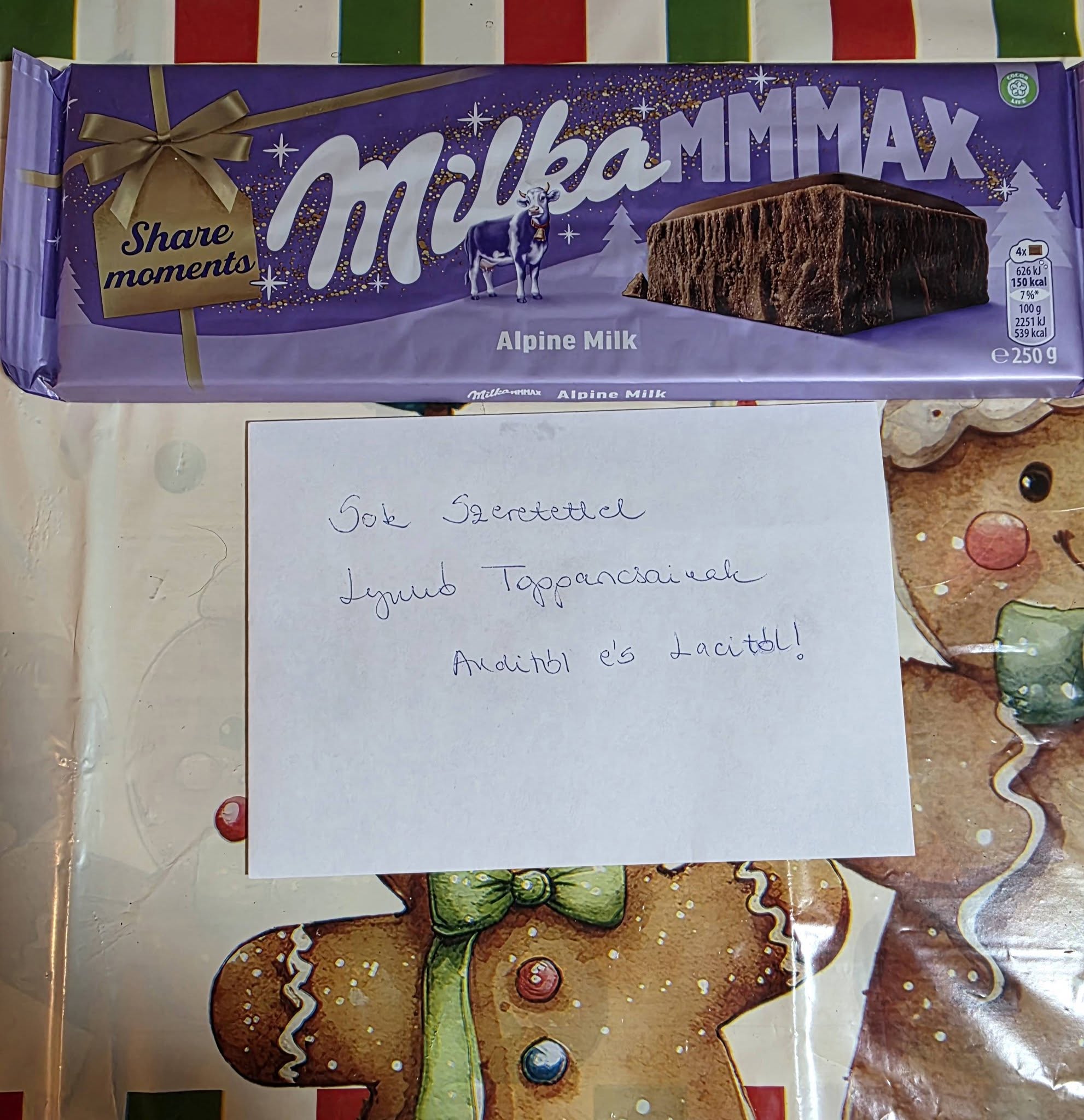 Egy nagyon kedves pár támogatását is elhozták nekünk, és egy óriási tábla csokival leptek meg