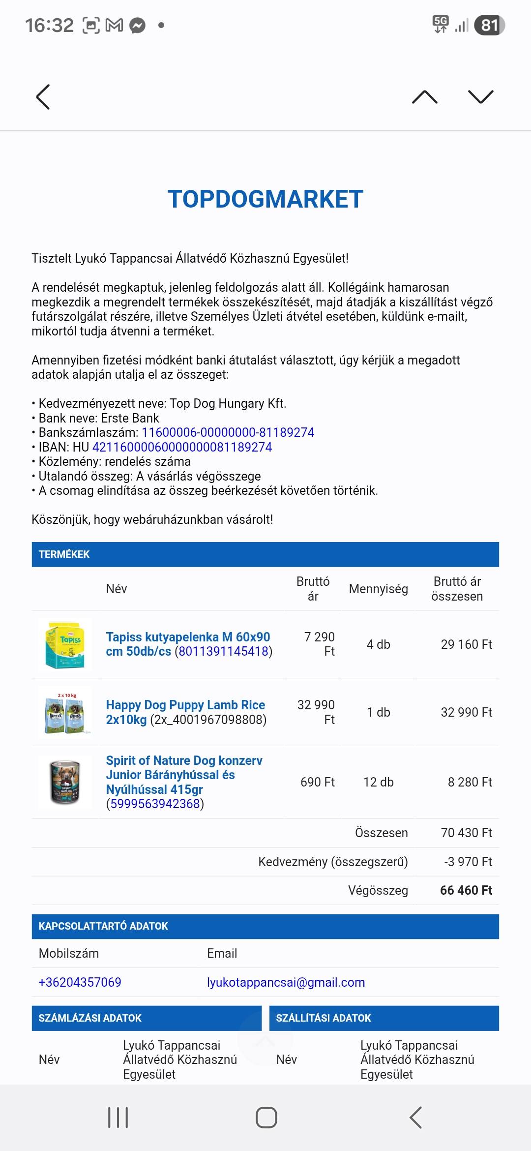 És mintha ez nem lenne elég… ez a drága hölgy nemcsak a hatalmas mennyiségű tápot vásárolta meg nekünk, hanem pénzbeli adománnyal is segítette a menhelyünket